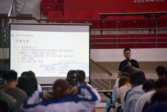 陈松松老师强调了校园安全的重要性,提醒新生遵守校规校纪,共同维护良好的校园环境。