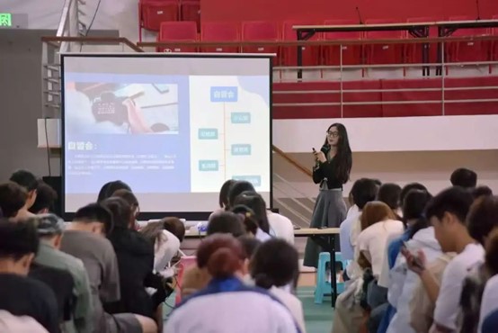 郝大天老师则介绍了学校的社团活动和文化艺术氛围,鼓励新生积极参与,丰富课余生活。