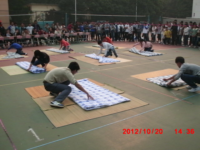 2012年10月20号14点,亚洲bet57365游戏大厅生活部在排球场举办以“创先争优我叠我秀”为主题的“叠被子”大赛。亚洲bet57365游戏大厅各部门负责人作为嘉宾参与了此次活动。