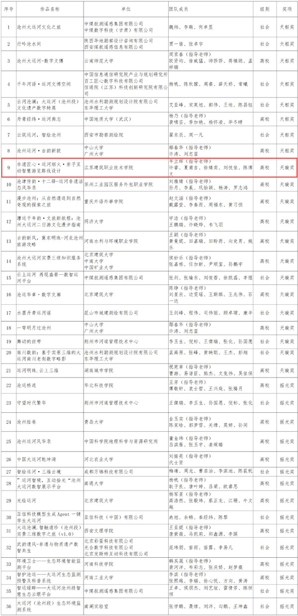 6月28日,由中国测绘学会主办的“天枢杯”第二届空天地信息技术赋能智慧城市创新应用大赛在武汉落幕。本次赛事吸引全国240余支团队报名,经严格评审最终36支队伍入围决赛。我校智慧城市管理技术专业学生团队凭借《非遗匠心·运河烟火·亲子互动智慧游览路线设计》作品,成为获得天璇奖的两所高职院校之一。