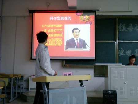 在学院深入开展学习实践科学发展观活动期间,我系学生党支部按照学院党委的要求,全面动员,全员参与,各团支部根据学习要求,组织开展了主题鲜明的学习实践活动,本次PPT展示大赛,就是各团支部学习成果的集中展示。
